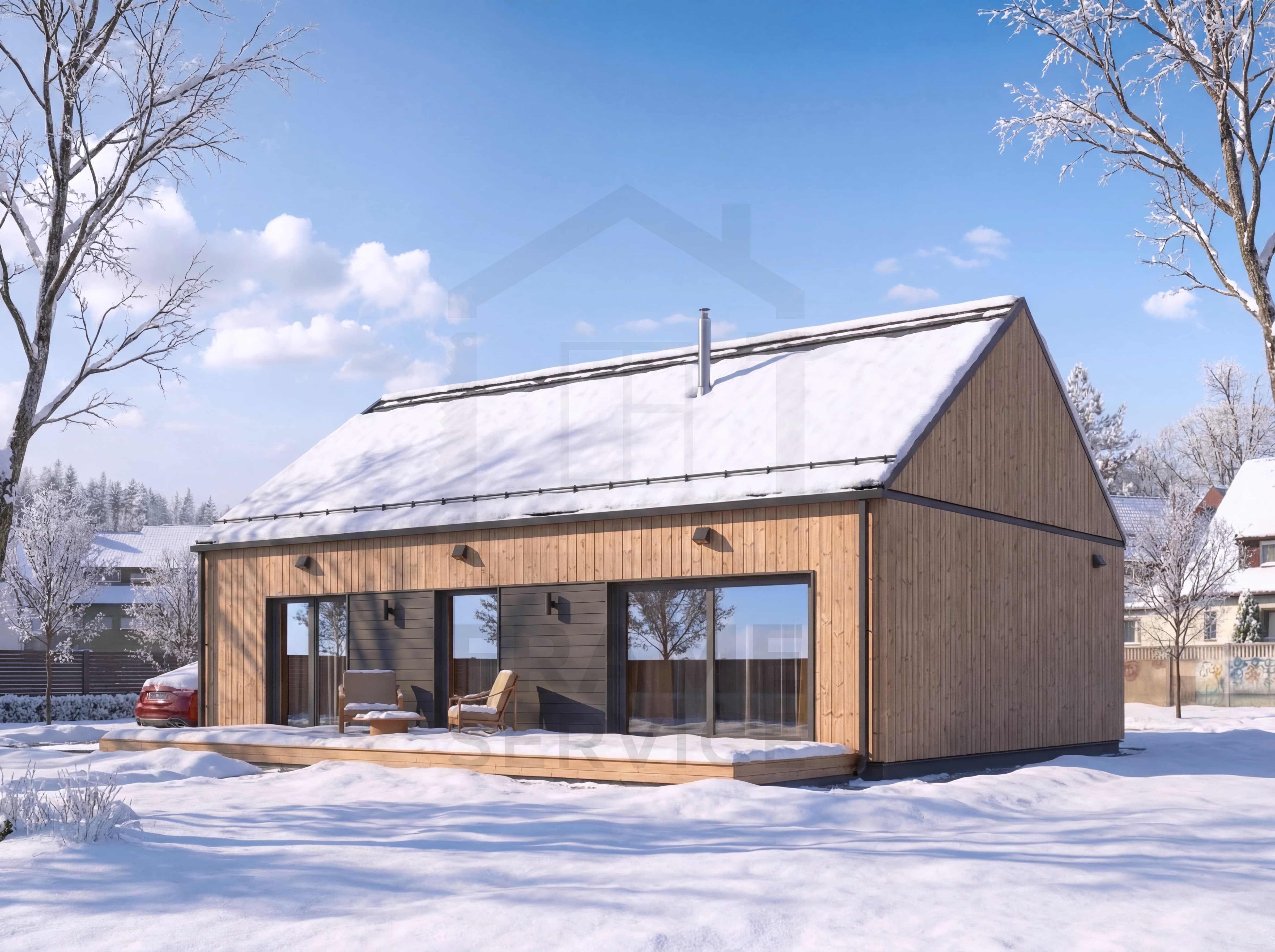− Wykonanie przyłączy do budynku – prąd, woda, kanalizacja.