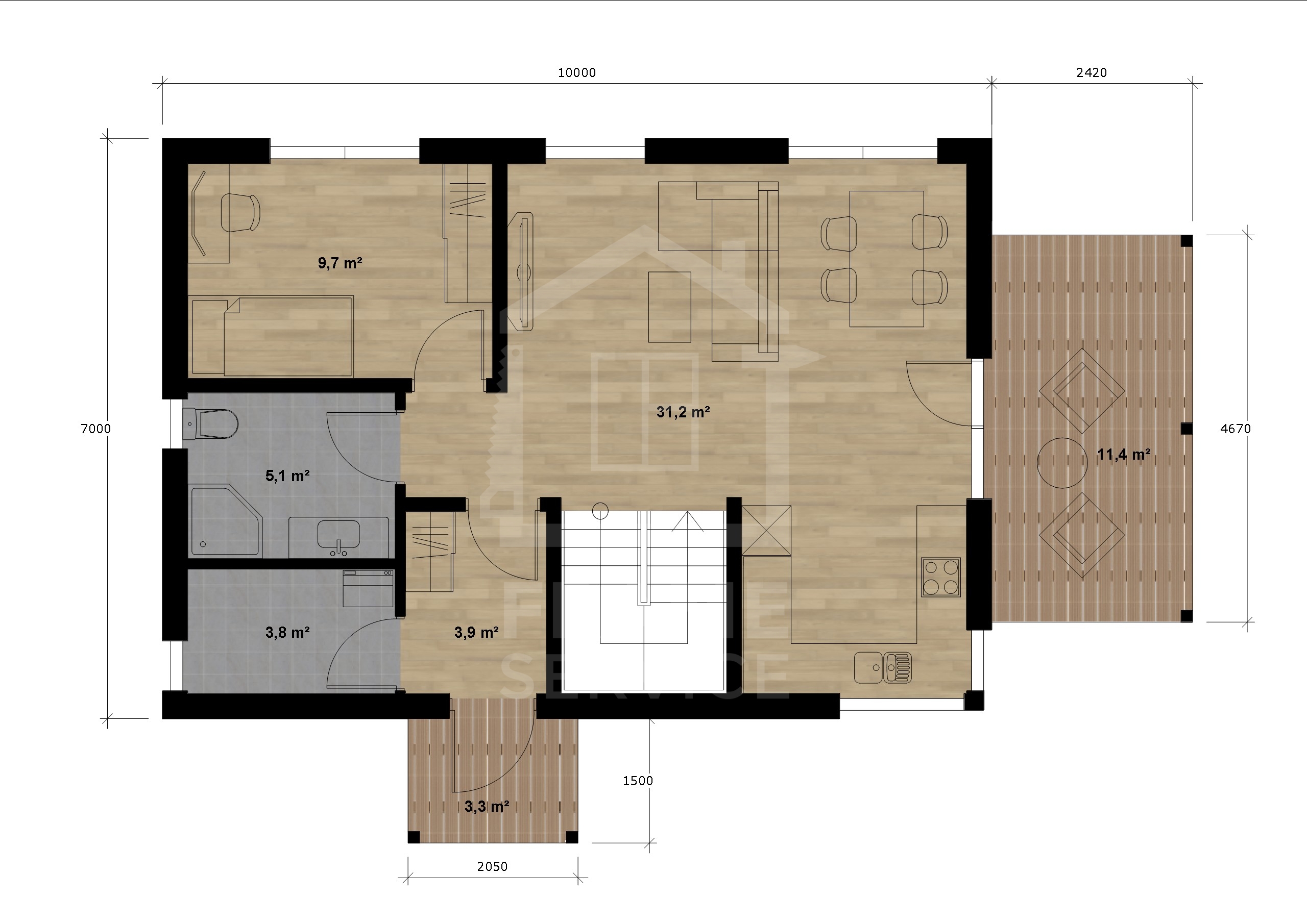 - − Wykonanie przyłączy do budynku – prąd, woda, kanalizacja.